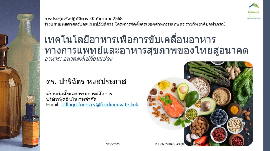 หัวข้อ: เทคโนโลยีอาหารเพื่อการขับเคลื่อนอาหารทางการแพทย์และอาหารสุขภาพของไทยสู่อนาคต